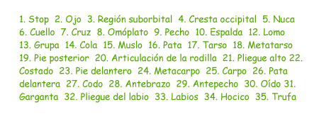 Presenta una trufa de buena amplitud, a fin de favorecer las cualidades olfativas de esta raza.
